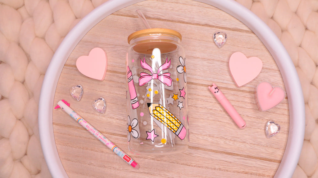 🎀Fiocchi e matite✏️ 16 oz Glass