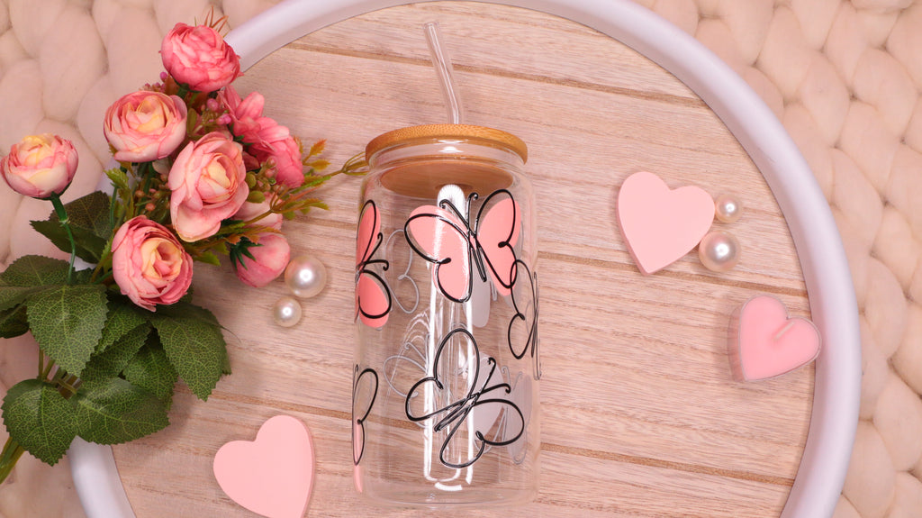 🦋Farfalle rosa pesca💕 16 oz Glass