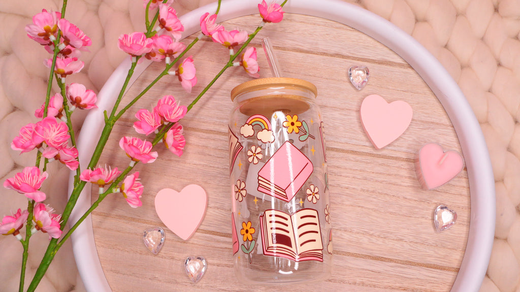 📖Libri rosa e arcobaleni🌈 16 oz Glass