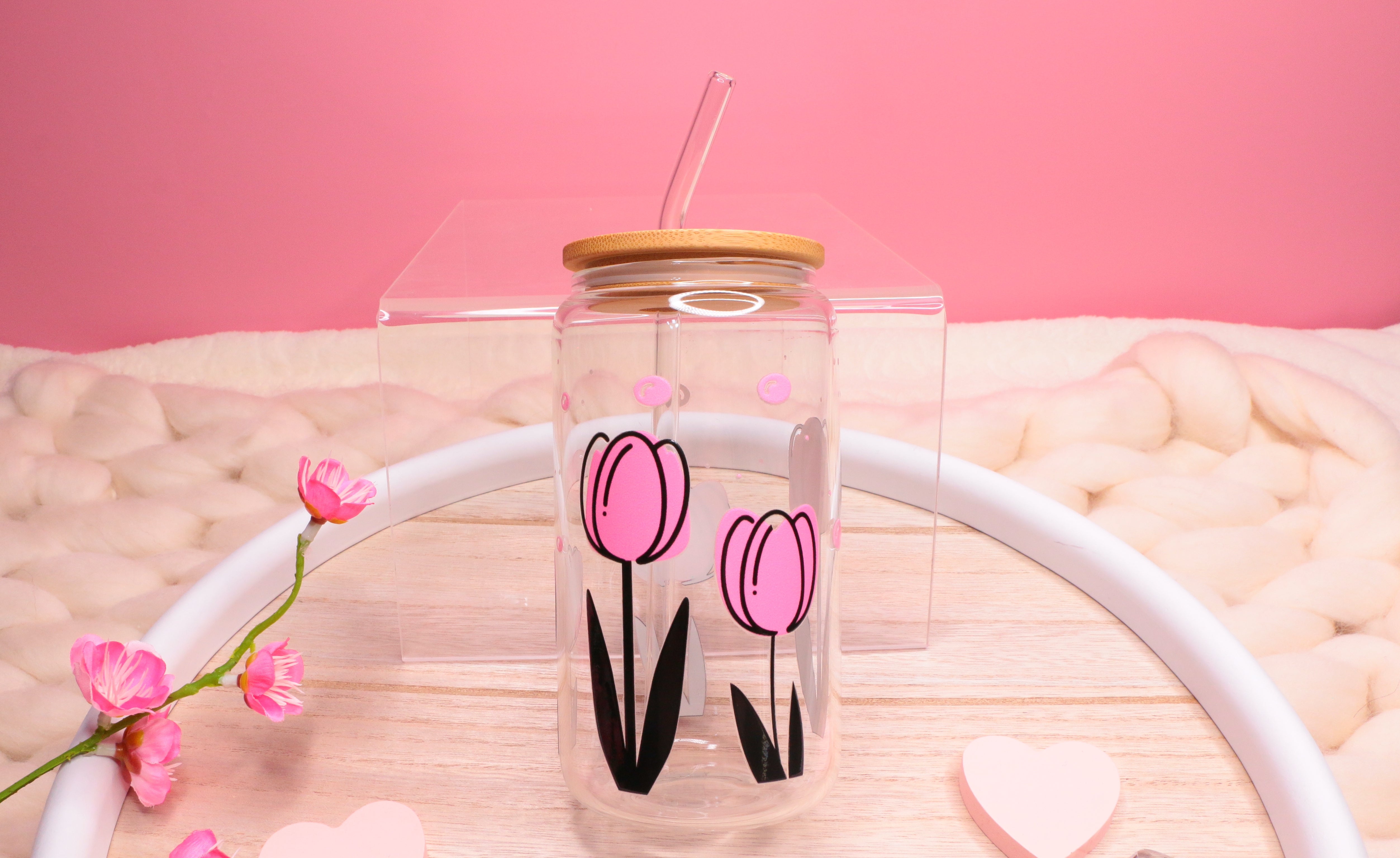 🌷Tulipani Rosa🌷 16 oz/500 ml Glass Cup