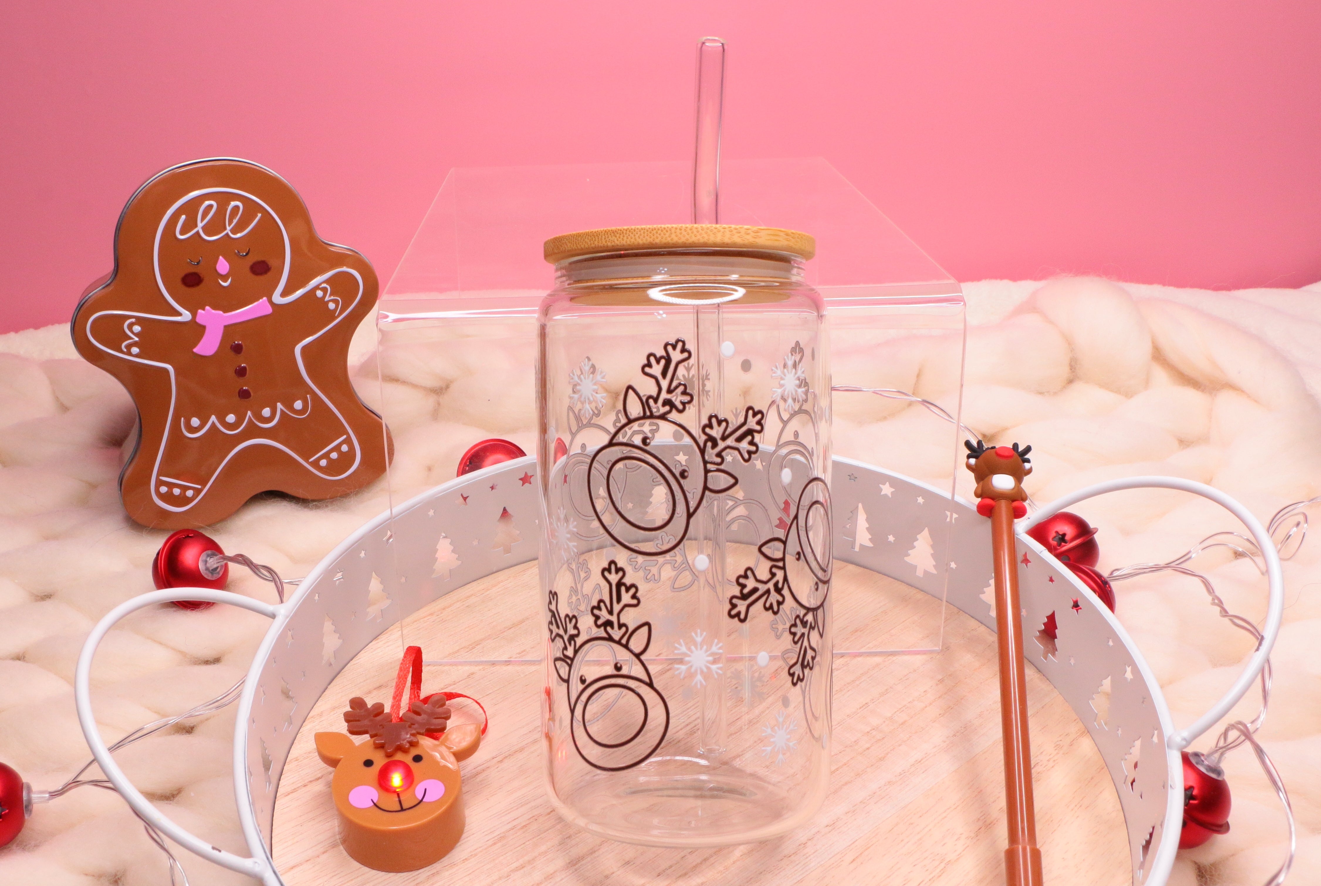 🎄Renne e Fiocchi di Neve❄️ 16 oz/500 ml Glass Cup