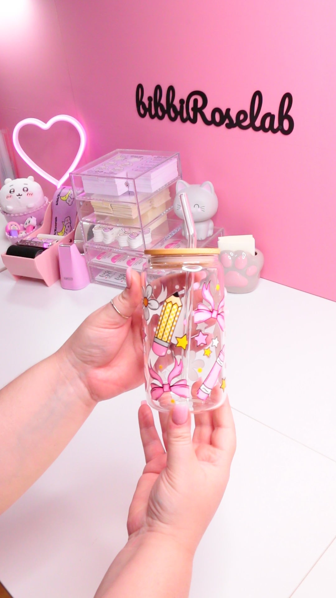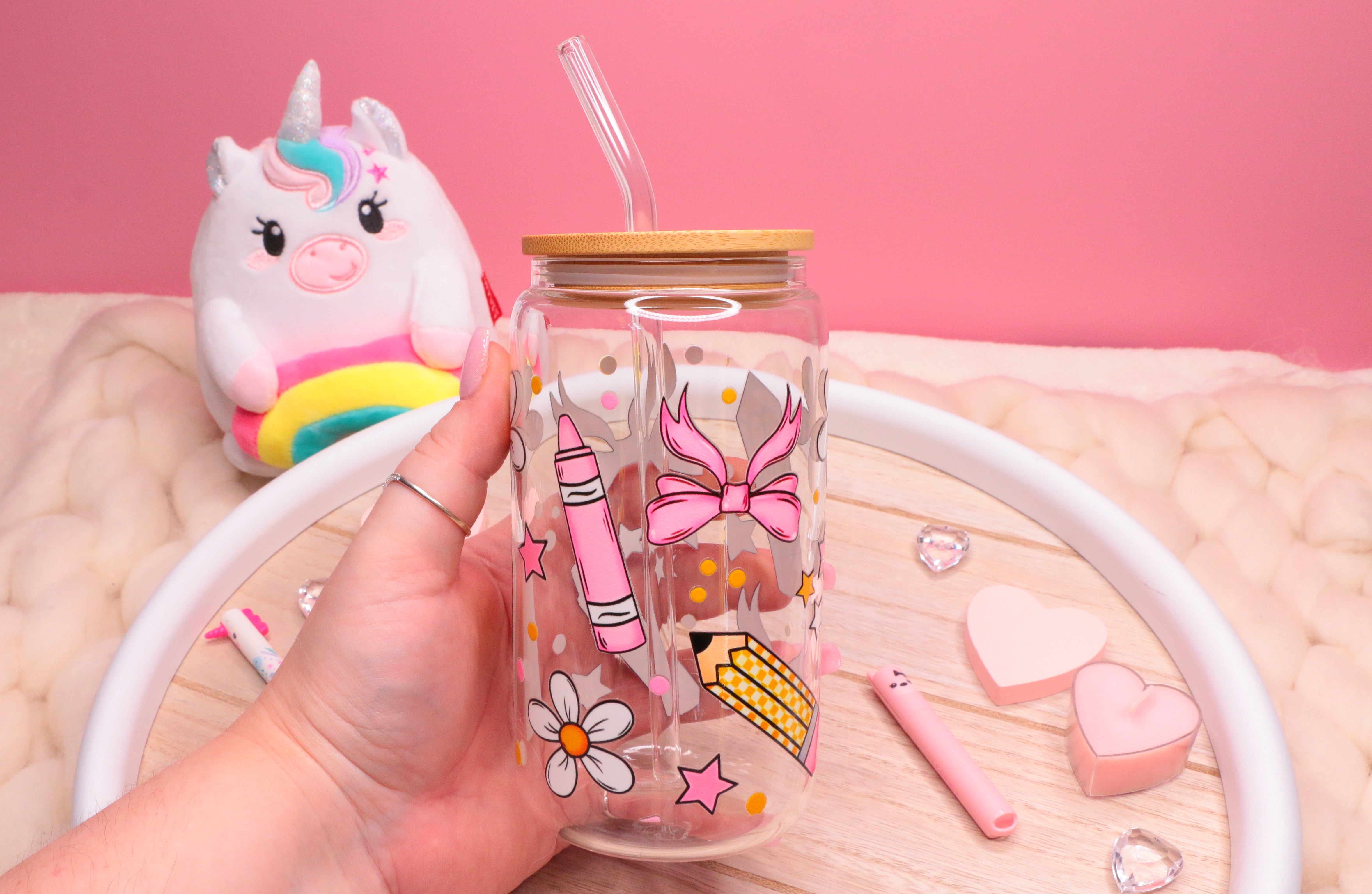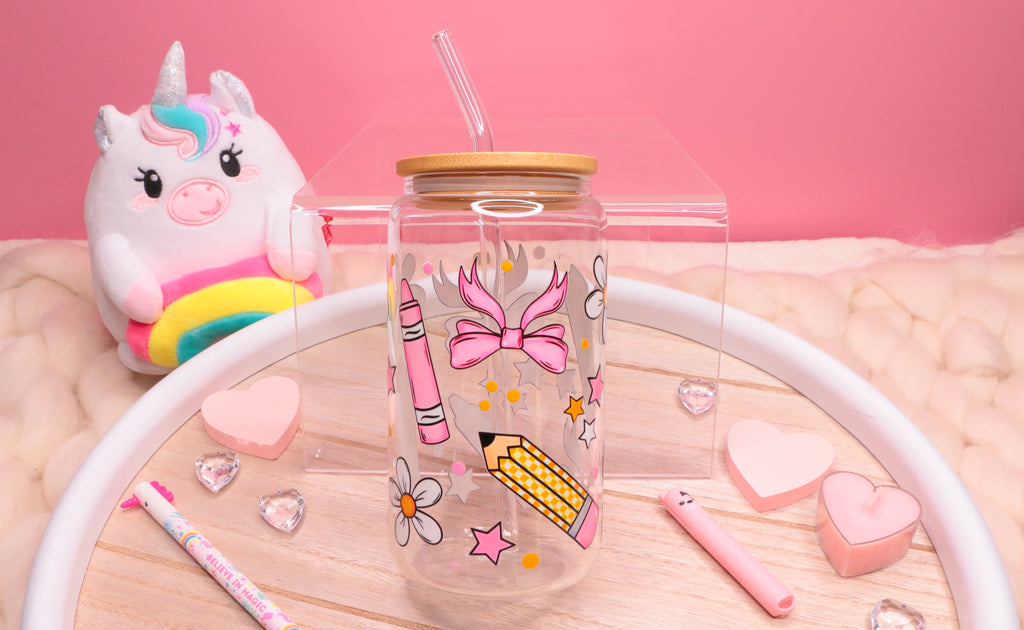🎀Fiocchi e matite✏️ 16 oz Glass
